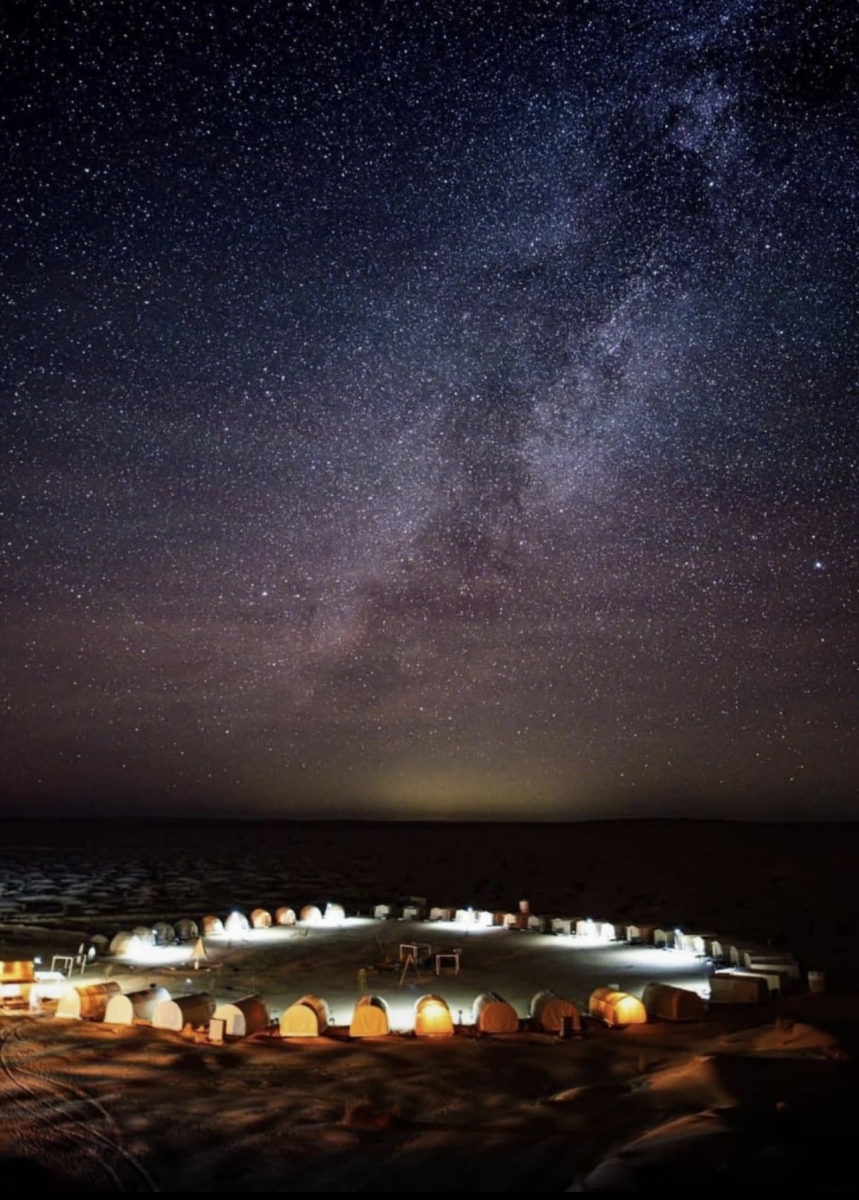 Après 2 nuits de bivouac époustouflant au cœur des dunes, rejoignez le camp fixe, plus confortable mais toujours dans l’esprit aventure :
